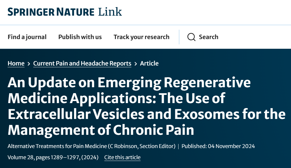 耶鲁大学医学院等科学家在《Current Pain and Headache Reports》上发表综述,详细介绍了细胞外囊泡,特别是干细胞外泌体,在骨关节炎、椎间盘疾病、神经性疼痛等慢性疼痛治疗方面的最新进展。