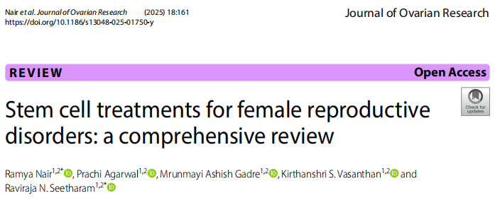 近日,印度Manipal Academy of Higher Education研究团队在国际著名学术期刊《Journal of Ovarian Research》(2025年)发表了一篇全面综述,深入总结了干细胞在女性生殖疾病领域的最新研究进展。